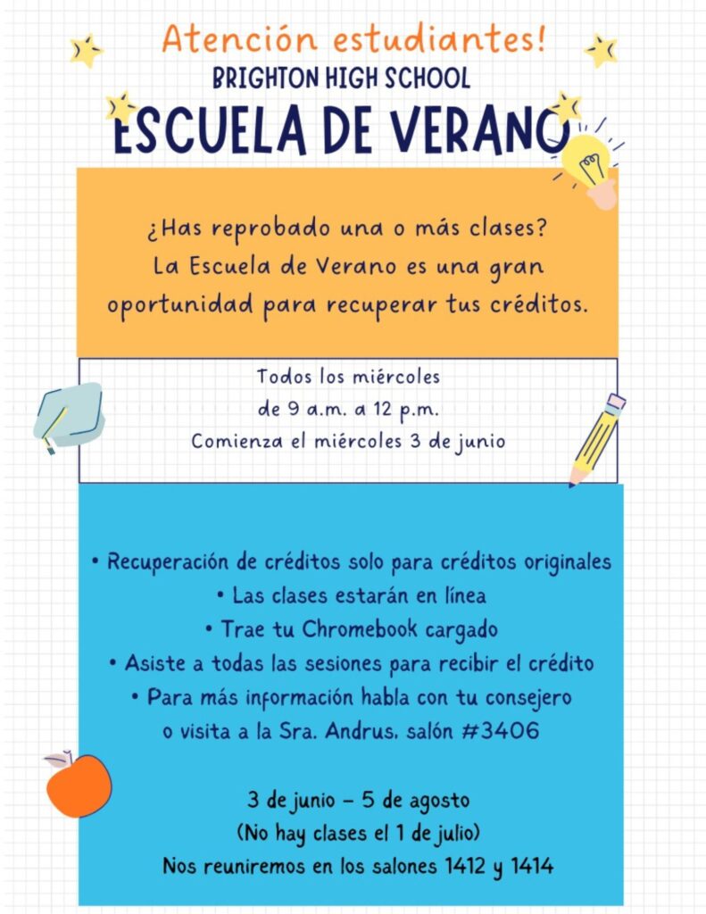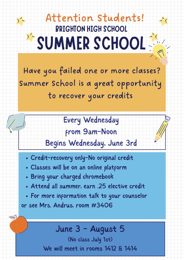 Attention Brighton students! Have you failed one or more classes? Summer school is a great opportunity to recover your credits.